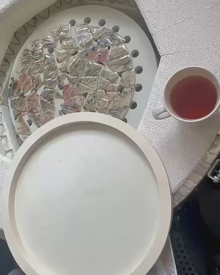 This ceramic mosaic was fired four times at temperatures reaching 1250°C.